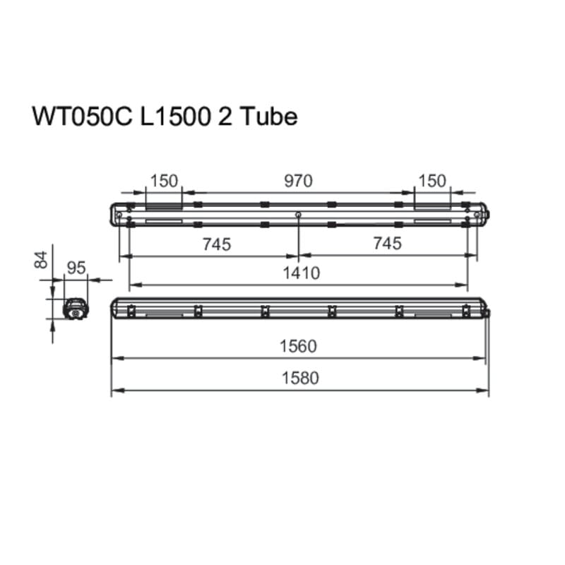 Philips Ledinaire Waterproof -valaisinrunko WT050C 2xTLED L1500. Pituus 1500mm, IP65, IK08, ON/OFF. T8-LED-valoputkille soveltuva valaisinrunko. Valoputki ei sisälly toimitukseen. Teollisuuskohteisiin, pysäköintihalleihin. Philips Ledinaire Waterproof -valaisinrunko vaihdettavalla valonlähteellä