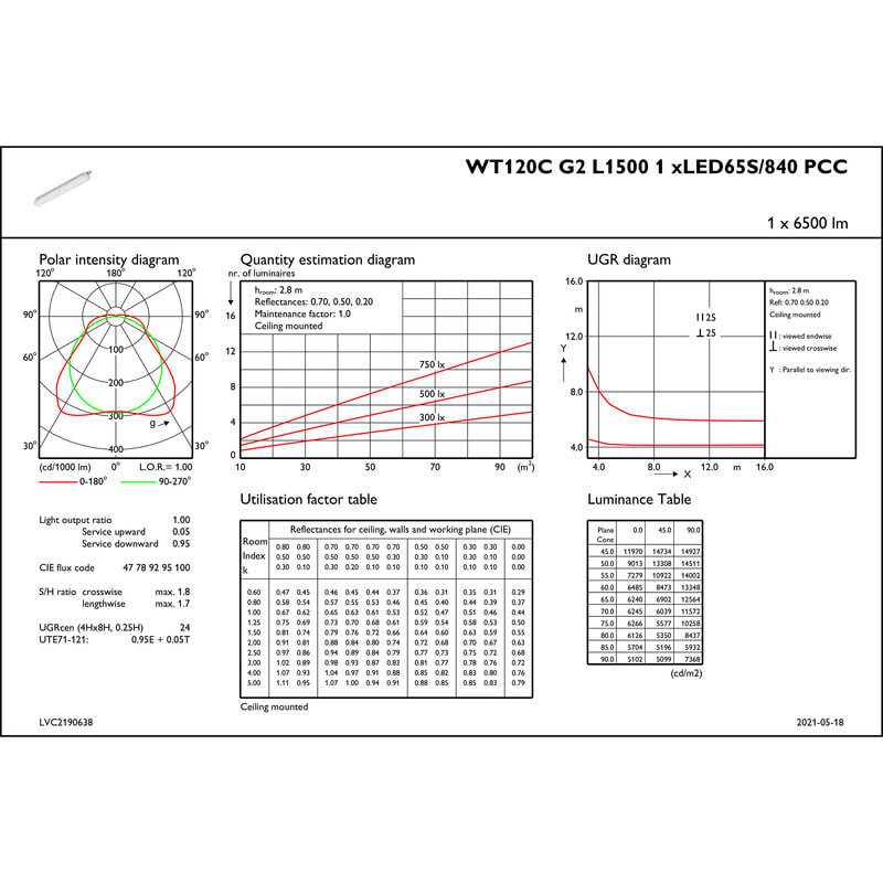 PHILIPS - Teollisuusvalaisin suljettu - WT120C G2 LED65S/840 WIA L1500