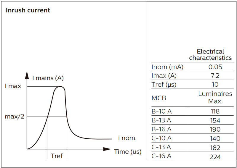 Enimmäismäärä valaisimia, johdonsuojakatkaisija C16: