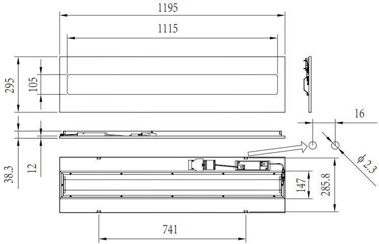 - Mitat (korkeus x leveys x syvyys): 40 x 300 x 1200 mm