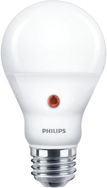 Philips LED-lamppu Dusk to Dawn LED D2D 60W A60 E27 WW FR ND SRT4. Teho7,5w, valovirta 806lm, värilämpötila 2700 K, käyttöikä 15 000 h, kantaE27, värintoistoindeksi 80. Varustettu valoanturilla. Philips Dusk to Dawn: päivä-/yötunnistimella varustettu LED-lamppu