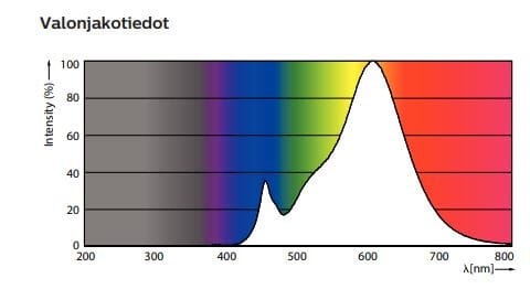 - Valotehokkuus: 100 lm/W
