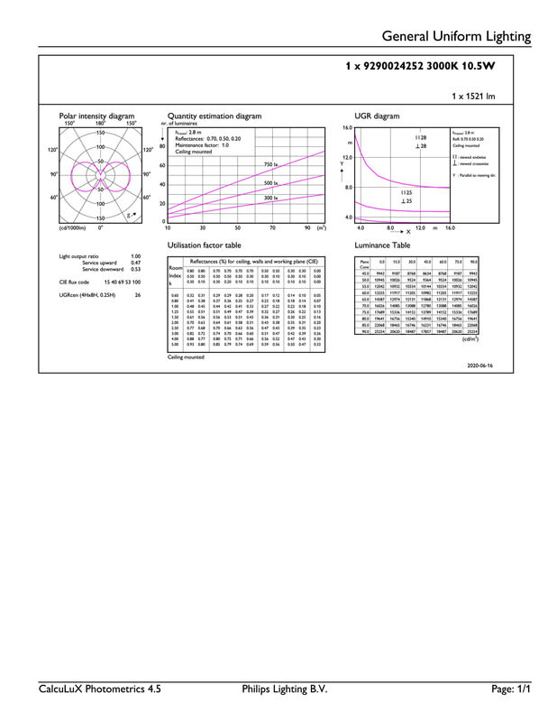 Laskennallinen valovoima IEC 62612 mukaan: