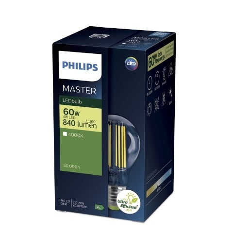 MASTER LEDbulb -vakiolamppu on markkinoiden ensimmäinen uuden energialuokan A vaatimukset täyttävä LED-lamppu. Lampun valotehokkuus on 210 lm/W ja se säästää 60% energiaa tavalliseen LED-lamppuun verrattuna. Lampulla on erittäin pitkä 50 000 tunnin käyttöikä, joka on keskimäärin 3,5 kertaa pidempi kuin tavallisilla LED-lampuilla. Lampun takaisinmaksuaika perinteiseen halogeenilamppuun verrattuna on vain viisi kuukautta.