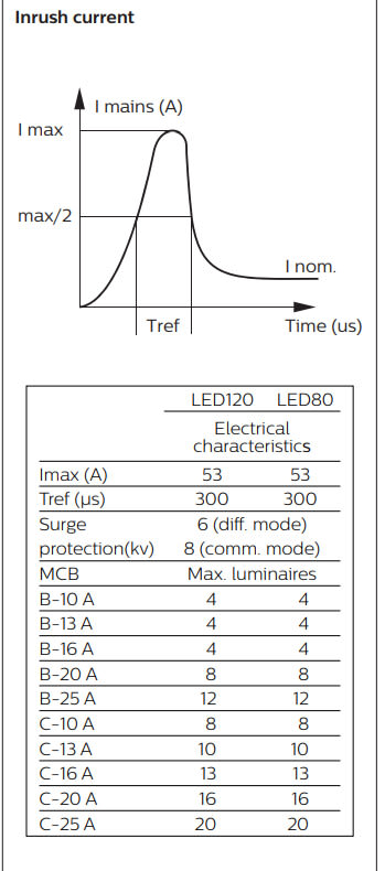 Enimmäismäärä valaisimia, johdonsuojakatkaisija C16: