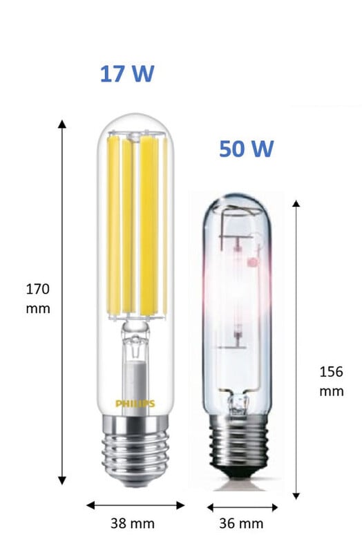 Huomioithan, että LED-korvaaja on kooltaan isompi kuin perinteinen lamppu.