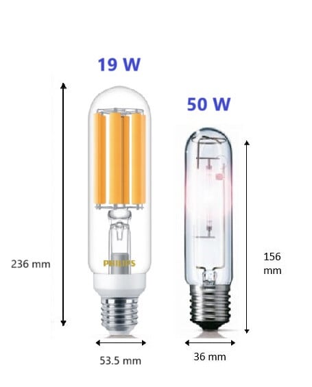 Philips MASTER LED HID SON-T Ultra Efficient -ympärisäteilevät lamput ovat helppo tapa korvata perinteiset suurpainenatriumlamput ulkovalaistuskohteissa. Lampun teho on 19 W (korvaa 50 W:n suurpainenatriumlampun) ja valovirta 3 600 lm. Lampulla on nopea takaisinmaksuaika ja huomattava energiansäästö. Lamppu on IP65 ja soveltuu ulkovalaistuskohteisiin, kuten kaduille, teille ja puistoihin, mutta myös sisätiloihin, kuten teollisuuskohteisiin. Lampun käyttöikä on 50 000 tuntia viiden vuoden tuotetakuulla.