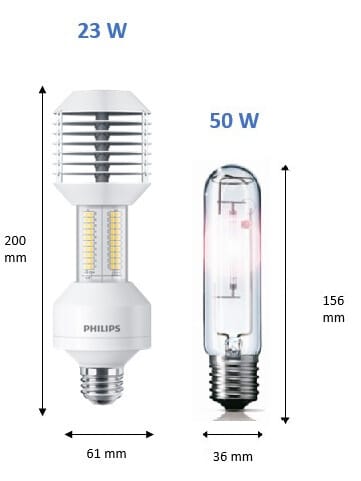 Philipsin MASTER LED SON-T -lamput tarjoavat energiatehokkaan ratkaisun perinteisten suurpainenatriumlamppujen korvaamiseen. Lampun valovirta on 3600 lm ja sen teho on 23 W. Se korvaa perinteisen 50 W suurpainenatriumlampun. Lamppu on IP40-luokiteltu, mutta sen voi asentaa ulkotiloihin soveltuvaan valaisimeen. Lampun elinikä on 70 000 h kahdeksan vuoden tuotetakuulla.