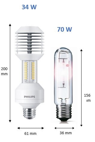 Philipsin MASTER LED SON-T -lamput tarjoavat energiatehokkaan ratkaisun perinteisten suurpainenatriumlamppujen korvaamiseen. Lampun valovirta on 5400 lm ja sen teho on 34 W. Se korvaa perinteisen 70 W suurpainenatriumlampun. Lamppu on IP40-luokiteltu, mutta sen voi asentaa ulkotiloihin soveltuvaan valaisimeen. Lampun elinikä on 70 000 h kahdeksan vuoden tuotetakuulla.