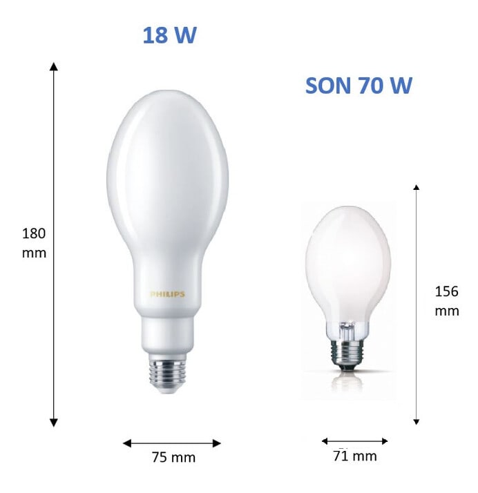 Philips Trueforce CorePro LED lamput ovat helppo tapa korvata perinteiset elohopeahöyry- ja suurpainenatriumlamput. Lampun teho on 18 W (korvaa 80 W elohopeahöyrylampun ja 70 W suurpainenatriumlampun) ja sen valovirta on 3000 lm. Lampulla on nopea takaisinmaksuaika ja huomattava energiansäästö. Lamppu on IP65 ja soveltuu ulkovalaistuskohteisiin, kuten kaduille, teille ja puistoihin, mutta myös sisätiloihin, kuten teollisuuskohteisiin. Lampun käyttöikä on 25 000 tuntia kolmen vuoden tuotetakuulla.
