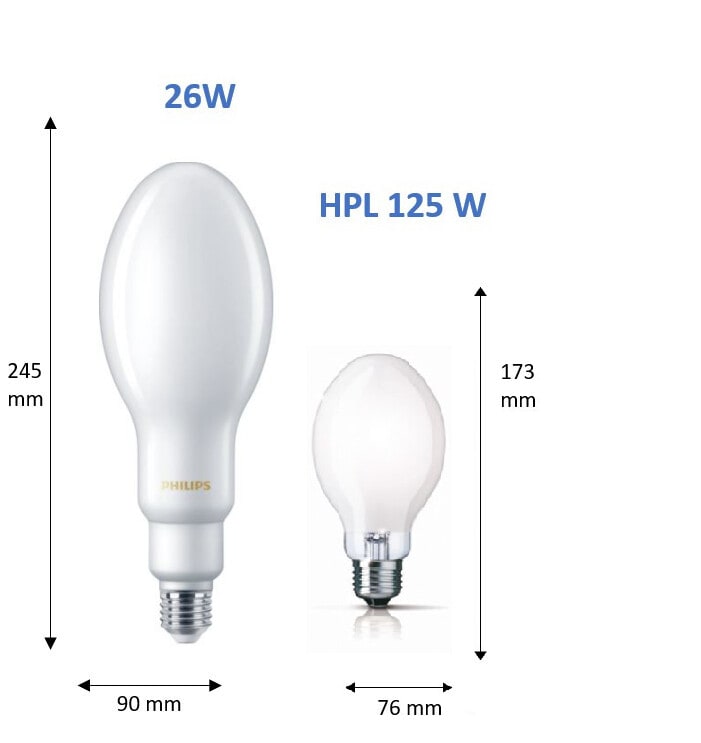 - Korvaa perinteisen 125 W elohopeahöyrylampun ja 70 W suurpainenatriumlampun