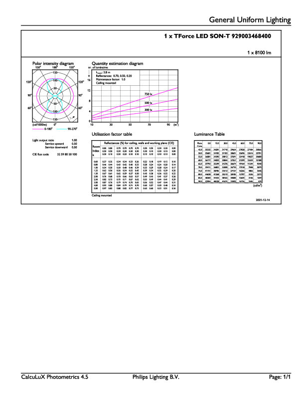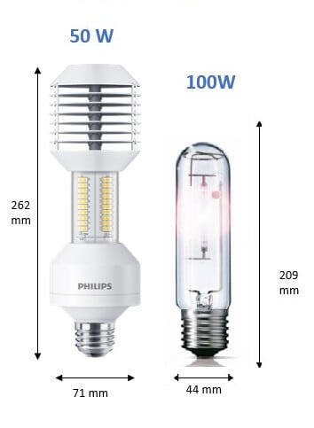Philipsin MASTER LED SON-T -lamput tarjoavat energiatehokkaan ratkaisun perinteisten suurpainenatriumlamppujen korvaamiseen. Lampun valovirta on 8100 lm ja sen teho on 50 W. Se korvaa perinteisen 100 W suurpainenatriumlampun. Lamppu on IP40-luokiteltu, mutta sen voi asentaa ulkotiloihin soveltuvaan valaisimeen. Lampun elinikä on 70 000 h kahdeksan vuoden tuotetakuulla.