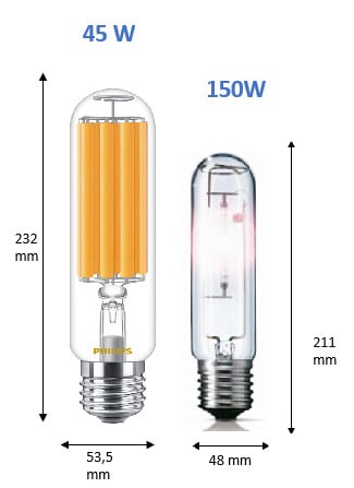 - Korvaa perinteisen 150 W suurpainenatriumlampun (SON-T)