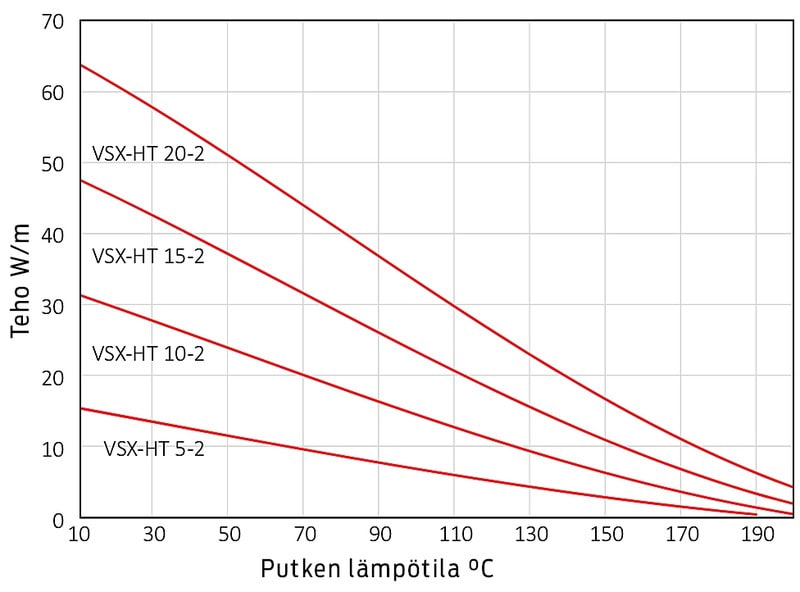 Korkealuokkainen, itsejarajoittuva lämpökaapeli korkean lämpötian sovelluksiin. VSX-HT -kaapelin teho määräytyy ympäristön lämpötilan mukaan ja sen teho kasvaa kun sitä ympäröivä lämpötila laskee. Kaapeli soveltuu luokittelemattomiin tiloihin sekä luokiteltuihin 1, 2 ,21 ja 22 -luokan tiloihin. Kaapeli voidaan päättää ja liittää jakorasiaan PETK 1 loppupääte- ja rasiapakkauksen avulla kun hetkellinen lämpötila jää alle +220 °C tai jatkuva lämpötila alle +150 °C. Tätä korkeammissa ympäristön lämpötiloissa on käytettävä Terminator-sarjan rasioita ja liitostarvikkeita.