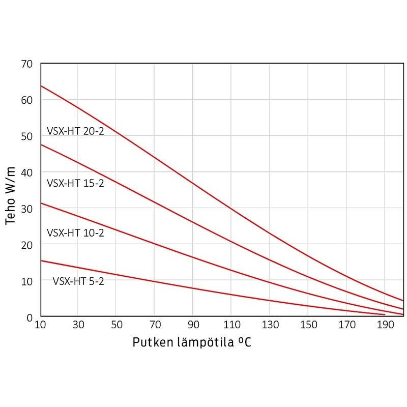 Korkealuokkainen, itsejarajoittuva lämpökaapeli korkean lämpötian sovelluksiin. VSX-HT -kaapelin teho määräytyy ympäristön lämpötilan mukaan ja sen teho kasvaa kun sitä ympäröivä lämpötila laskee. Kaapeli soveltuu luokittelemattomiin tiloihin sekä luokiteltuihin 1, 2 ,21 ja 22 -luokan tiloihin. Kaapeli voidaan päättää ja liittää jakorasiaan PETK 1 loppupääte- ja rasiapakkauksen avulla kun hetkellinen lämpötila jää alle +220 °C tai jatkuva lämpötila alle +150 °C. Tätä korkeammissa ympäristön lämpötiloissa on käytettävä Terminator-sarjan rasioita ja liitostarvikkeita.