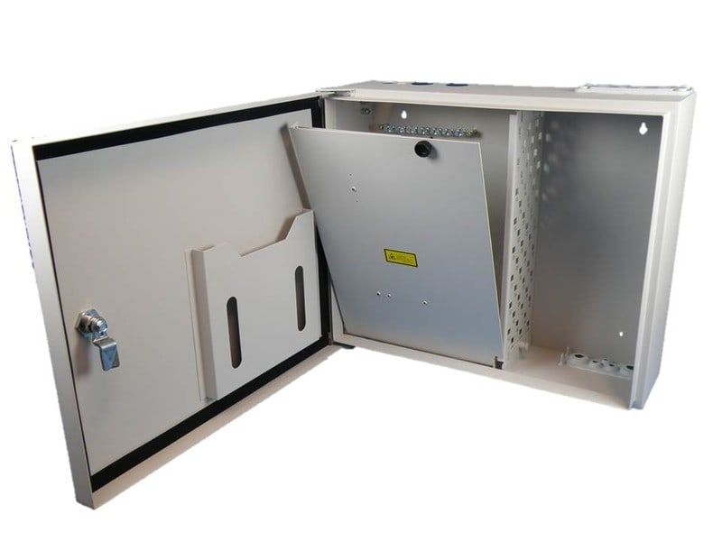 Kaapin runko ja ovi. Runko ja kansi. Kytkentärima kaapeleiden maadoitukseen. KT-1016 sisäänvientitarvikkeet yhdelle kaapelille, 1kpl. KT-1412/24 jatkoslevy 24 kuitujatkokselle, 1 kpl. Vedonpoistokiskoja 24:lle 2 mm FMS häntäkaapelille, 2 kpl. Liitinpaneeli 48:lla SC tai LC-D (LC-duplex) adapterille.