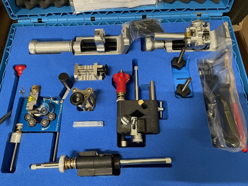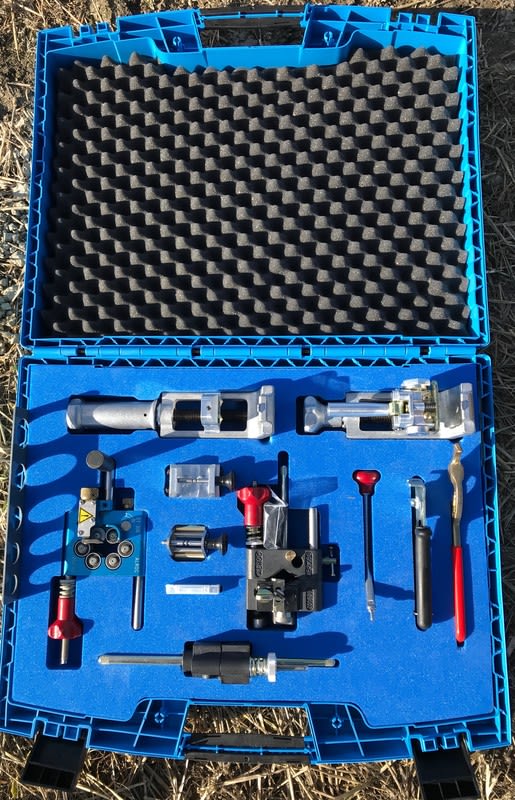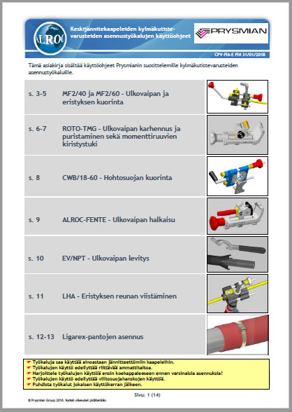 Laukku sisältää työkalut ulkovaipan kuorintaan, karhennukseen, halkaisuun, levitykseen, puristamiseen, Ligarex-pantojen asennukseen, hohtosuojan kuorintaan, eristyksen kuorintaan ja eristyksen viistämiseen. Sen lisäksi työkalulaukku sisältää suomenkielisen käyttöohjeen opastamaan laitteiden käytössä, reikälevyn helpottamaan hohtosuojan kuorintaa sekä kestävän muovilaatikon, josta löytyy oma paikka jokaiselle työkalulle.