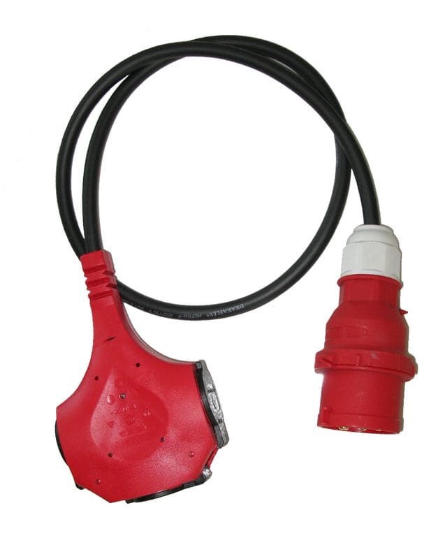 Adapteri 3/1 1,3m, 855, VSKB 5x1,5S. 3-vaiheinen pistotulppa muutetaan3-osaiseksi pistorasiaksi