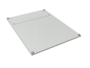 Kaappirunko ovilla ja hitsatulla kattolevyllä, Kaksi 482,6 mm:n (19\") profiilikiskoa edessä ja takana Lasiovi edessä ja teräslevyovi takana, 130°-saranat