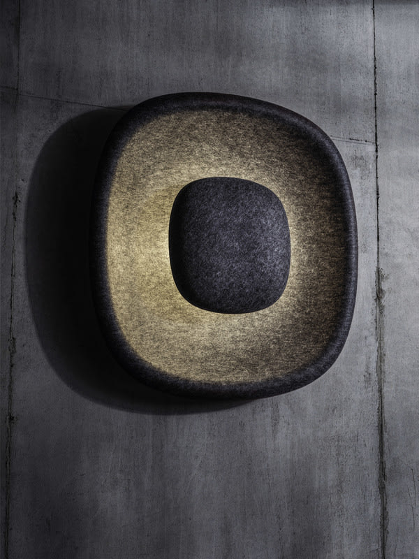 SUB on asennettavissa sekä kattoon että seinälle, antaen mukavan tunnelmallisen valon. Yhdistelemällä useita SUB-valaisimia, voidaan muodostaa arkitehtoonisia kokonaisuuksia tiloihin. Valaisin on valmistettu kierrätetystä polyesterihuovasta, joka toimii valaisimen lisäksi myös akustisena elementtinä.
