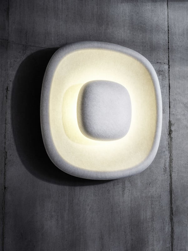 SUB on asennettavissa sekä kattoon että seinälle, antaen mukavan tunnelmallisen valon. Yhdistelemällä useita SUB-valaisimia, voidaan muodostaa arkitehtoonisia kokonaisuuksia tiloihin. Valaisin on valmistettu kierrätetystä polyesterihuovasta, joka toimii valaisimen lisäksi myös akustisena elementtinä.