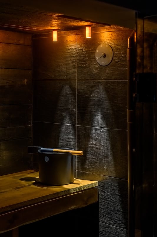 Saunassa valaisimia voi yhdistää highline sauna ledvalojen kanssa esim. 4 kpl saas sauna id -valaisimia luomaan epäsuoraa valaistusta seinäpinnalle ja 2 kpl saas sauna glow -valaisimia luomaan tunnelmaa kulmiin.