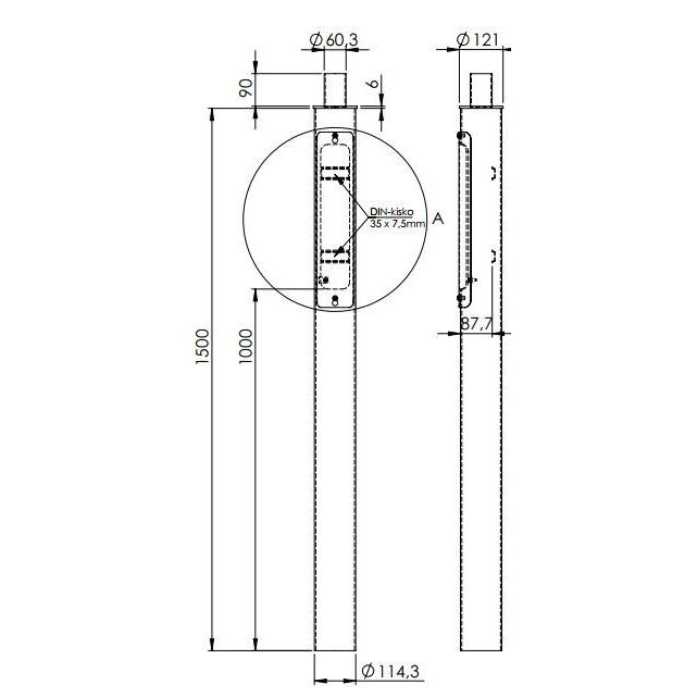 - Pylvään maanpäälinen pituus 1100mm