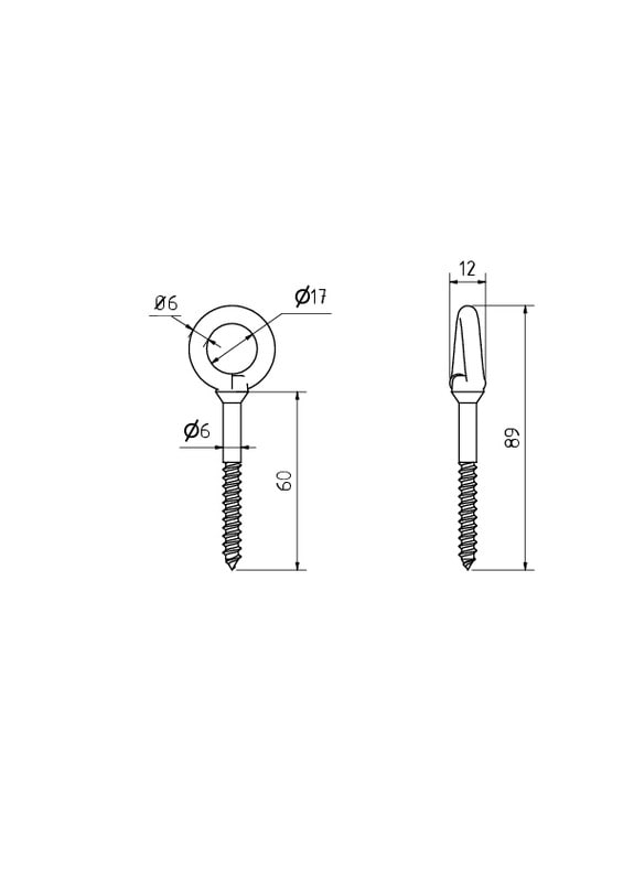 Silmukkaruuvi 6x60 puukierteellä. Kuumasinkitty.