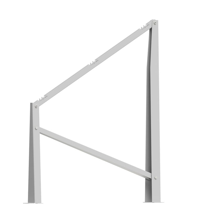 Aurinkopaneelien maa-asennusteline. Paneelit asennetaan yhteen riviin ja pystyyn. Teline valmistetaan erittäin säänkestävästä pinnoitetusta teräksestä. Teline toimitetaan osittain koottuna.