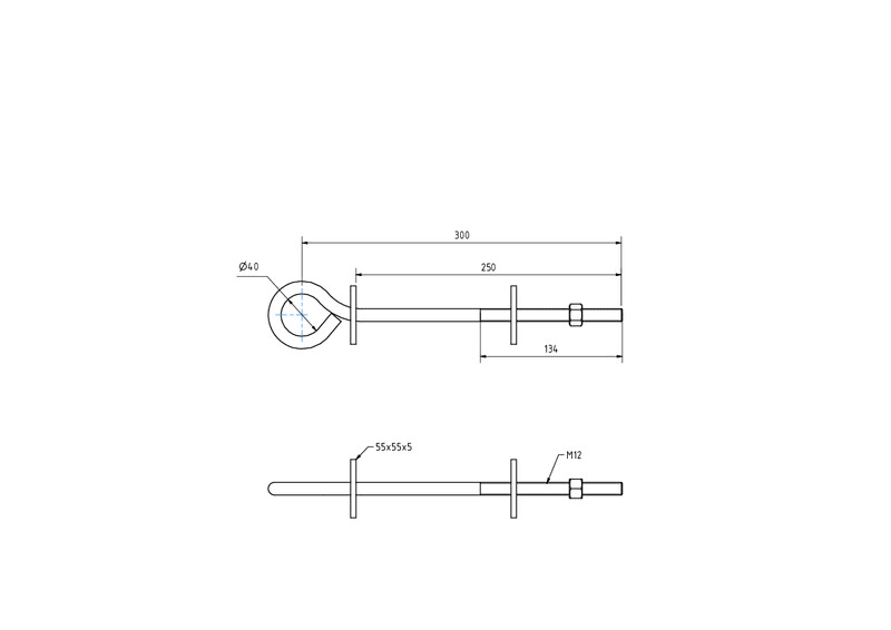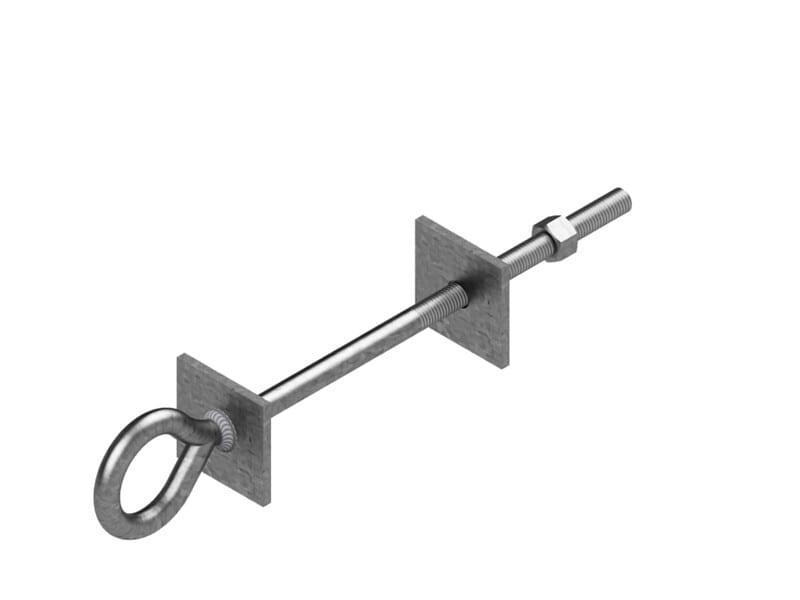 L260+50 D40 d12 M12x120 Päätesilmus M12 kierteellä. Sisältää neliöaluslevyn ja mutterin. Kuumasinkitty.