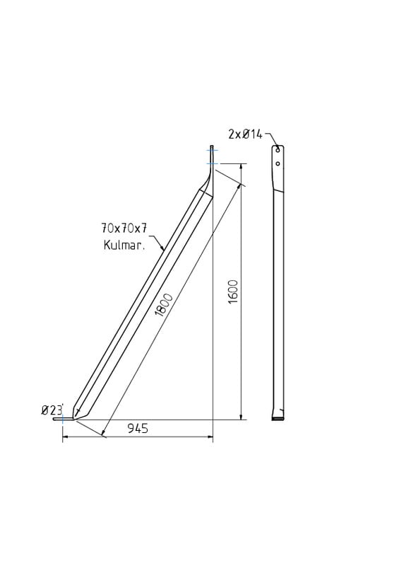 Kalliopylvään vinotuki Kulmaraudasta valmistettu kalliopylvään vinotuki, jota käytetään kalliopylvään tukemiseen. Pituus 1800 mm. Valmistetaan omalla tehtaallamme Suomessa. Kuumasinkitty.