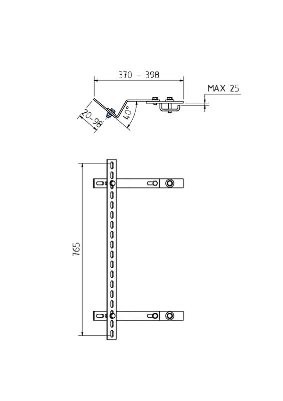 Muuntajaan kiinnitettävä helposti säädettävä ylijännitesuojateline. Kuumasinkitty. Valmistettu omalla tehtaallamme Suomessa.