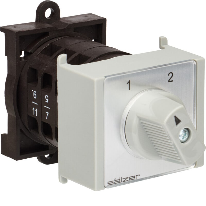 Vaihtokytkin 3-vaiheisen asennuksen kuorman ohjaukseen, esimerkiksi kahden eri vaihtoehtoisen kuorman käyttöön. Kytkin ilman nolla-asentoa. Asennus mahdollista DIN-mitoitettuihin asennuskoteloihin ja keskuksiin. DIN-aukosta ulos tulevan otsapinnan mitat 45 x 52.2 mm. Kiinnitys 35 mm DIN-kiskolle.