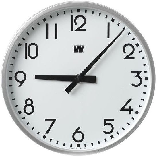 ESMI-minuuttipulssisivukello WE-81133/40. Eloksoitu alumiinikehys. Arab. numerot (1-12) ja lyhyet minuuttiviivat. Kellotaulun halkaisija 400 mm. Suora suojalasi.
