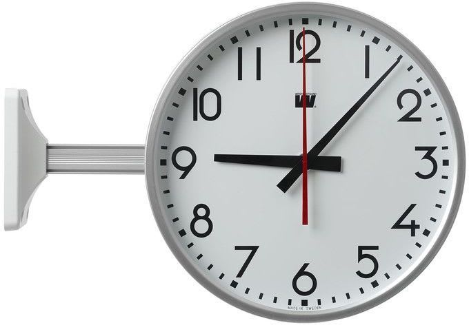 ESMI-min.puls.sivukello sek.osoittimella WE-88733/30 kattovarrella. Elok.alum.kehys. Arab. numerot (1-12) ja lyhyet minuuttiviivat. Kellotaulun halk. 300 mm. Suora suojalasi. Laatikossa 2 kello ja 1 varsi. Varren suunnan (seinä/katto) voi vaihtaa.