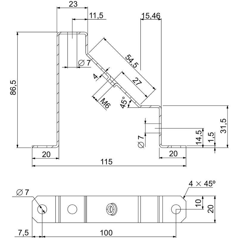 Tuki DIN-kiskolle 45º kulma 2kpl