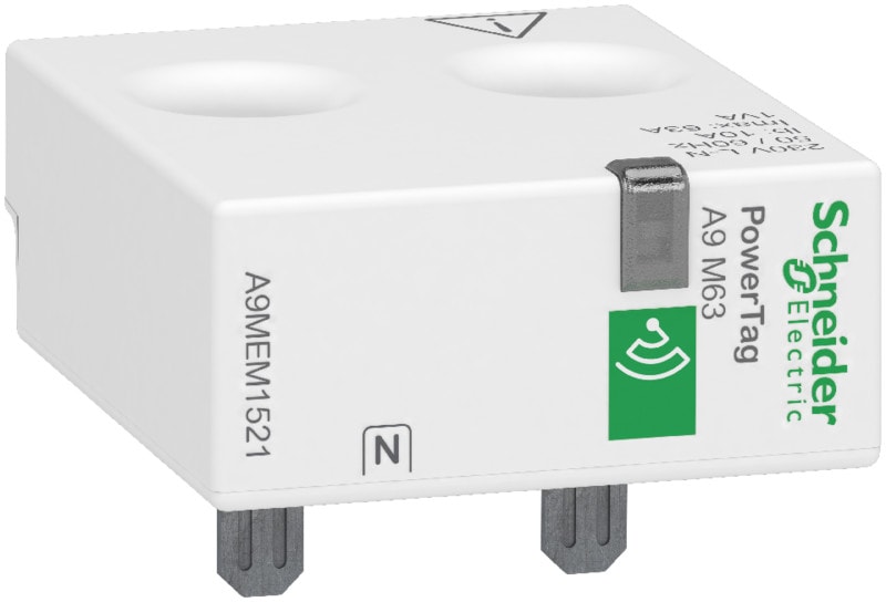 Acti9 PowerTag 2P N vasemmalla PowerTag on langaton energian- ja tehonmittaussensori 1P, 1P+N, 3P ja 3P+N -sähkönjakeluun.