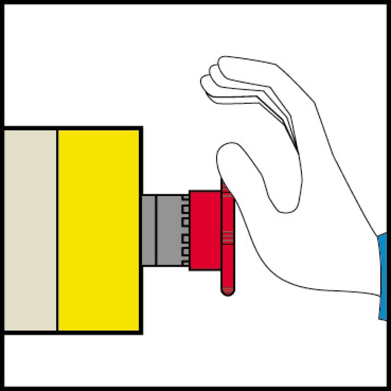 Hätä-seis painikekokonaisuus. Sisältää painikenupin, rungon ja koskettimet