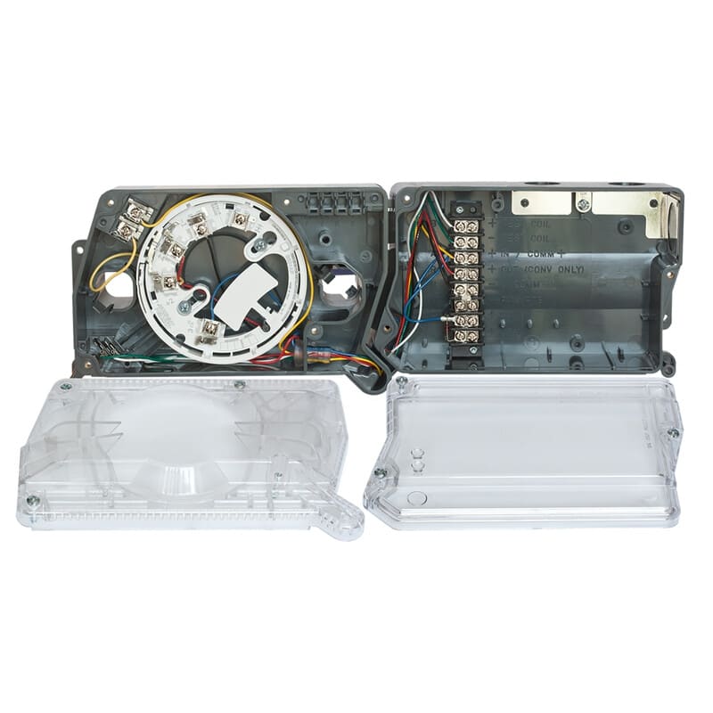 Osoitteellinen kanavailmaisinrunko, AP200- sarjan kanavailmaisin, Kanavailmaisinkotelo sisältää ilmaisimen asennuskannan, Ilmaisimeksi soveltuu ESMI22051E optinen savuilmaisin, Soveltuvat näytteenottoputket DST1, DST 1,5, DST3, DST5 tai DST10, Ilmaisin ja näytteenottoputki tilataan erikseen