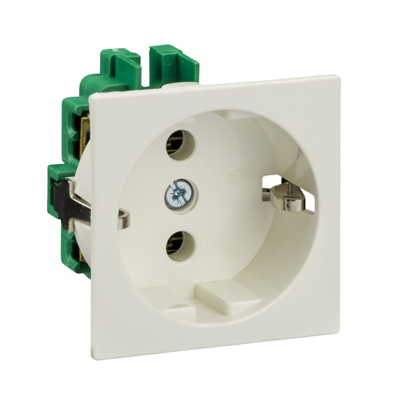 Kojepistorasia. Maadoitettu 1-osainen kojepistorasia. Nimellisvirta 16A. Nimellisjännite 250 V. Väri: valkoinen. Napojen lukumäärä: 3