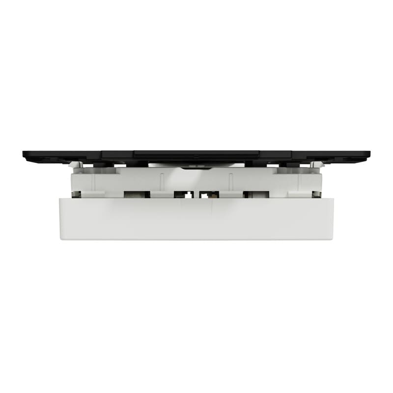 Langattomalla, paristokäyttöisellä Wiser-painikkeella ohjaat järjestelmän automaatioita ja esiasennettuja tilanteita näppärästi. Painike on kätevä myös ulko-oven viereen, jolloin Kotona/Poissa kotoa -tilanteiden hallinta on helppoa.