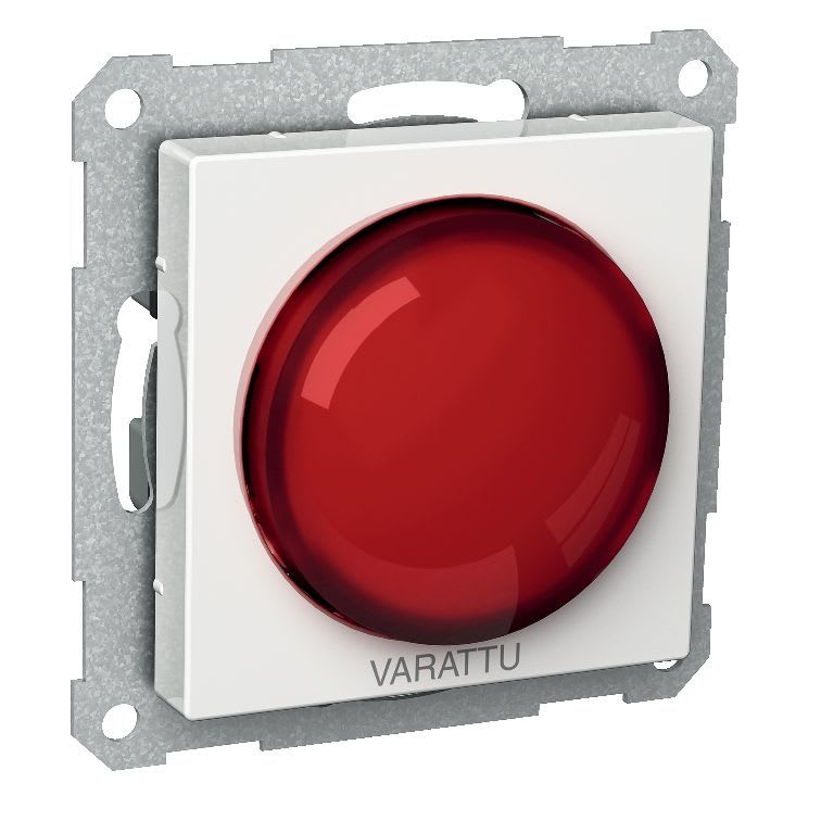 • Punainen kilpi \"VARATTU\" tekstillä. IP20 c/c 60mm uppokojerasia-asennuksiin tai 35mm pintakojerasiaan.