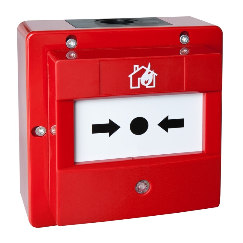 Palopainike, ulkokäyttöön soveltuva osoitteellinen palopainike, pinta-asennus, sisältää oikosulkuerottimen
