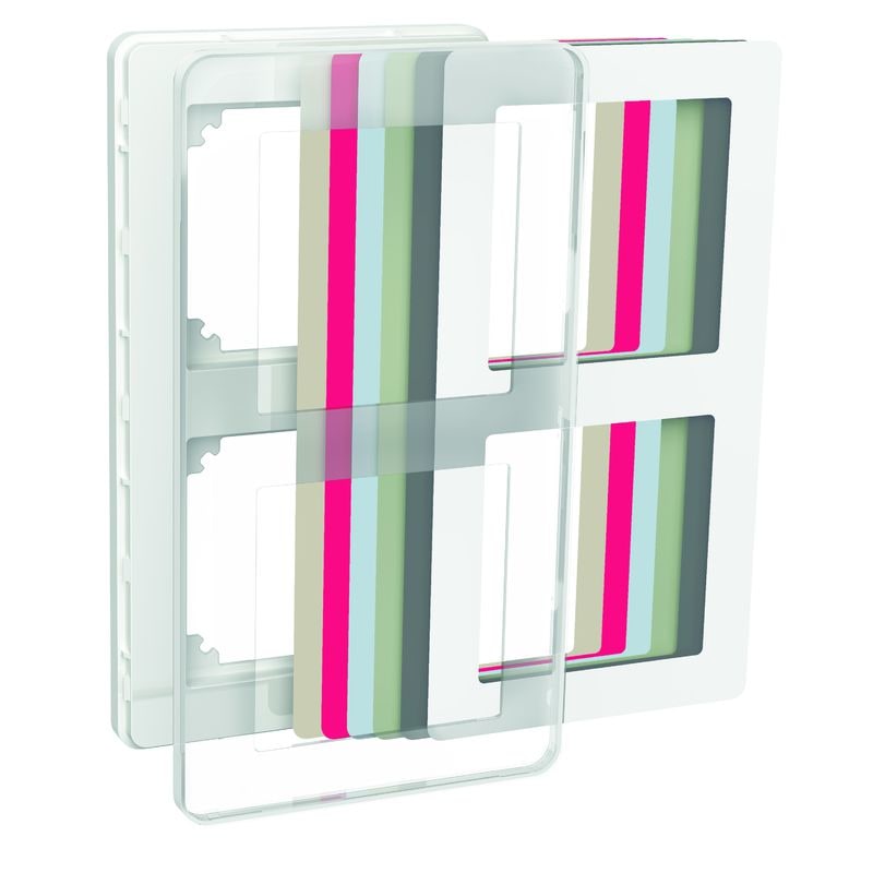 • Kehykset läpinäkyvällä pintaosalla ja useita helposti vaihdettavia väriliuskoja.