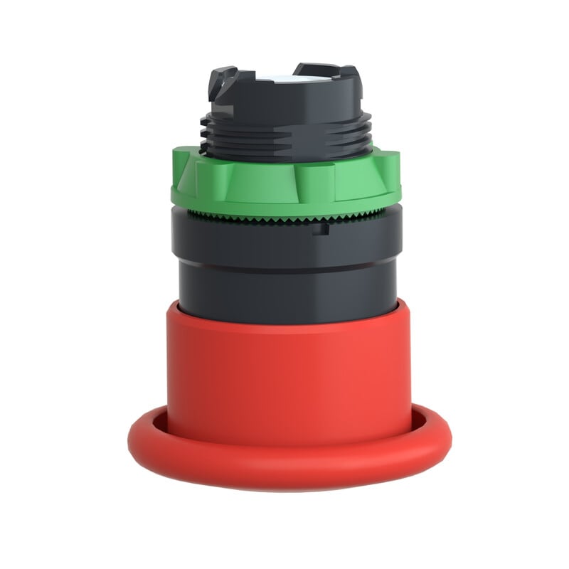 - Sienipainikkeet hätäpysäytykseen tai hätäkatkaisuun, kiertämällä , avaimella tai vetämällä vapautus , Ø 30, 40, 60 mm