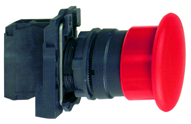 - Sienipainikkeet hätäpysäytykseen tai hätäkatkaisuun, kiertämällä , avaimella tai vetämällä vapautus , Ø 30, 40, 60 mm