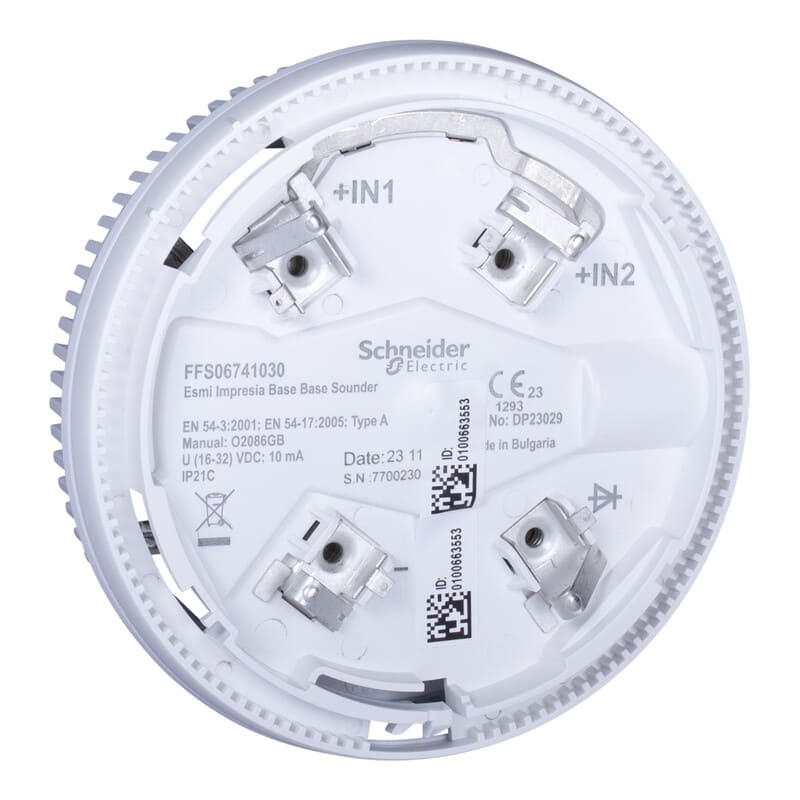 Kantaäänihäytin, Esmi Impresia ELC, VAD-kannalle, valkoinen Esmi Impresia kantaäänihälytin on asennuskantaan asennettava sireeni. Voidaan asentaan normaaliin tai korkeaprofiiliseen asennuskantaan. Kantaäänihälytin soveltuu käytettäväksi myös VAD kantavilkkujen kanssa.