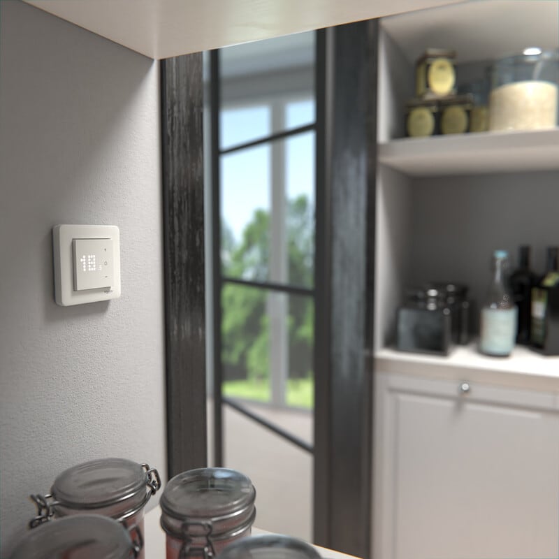 Wiser-yhdistelmätermostaatti yhdistää älykodin lämmityksen muuhun älykotijärjestelmään. Termostaatti soveltuu sähköisen ja vesikiertoisen lämmityksen tilanne- sekä automaatio-ohjaukseen Wiser by SE-sovelluksen kautta.