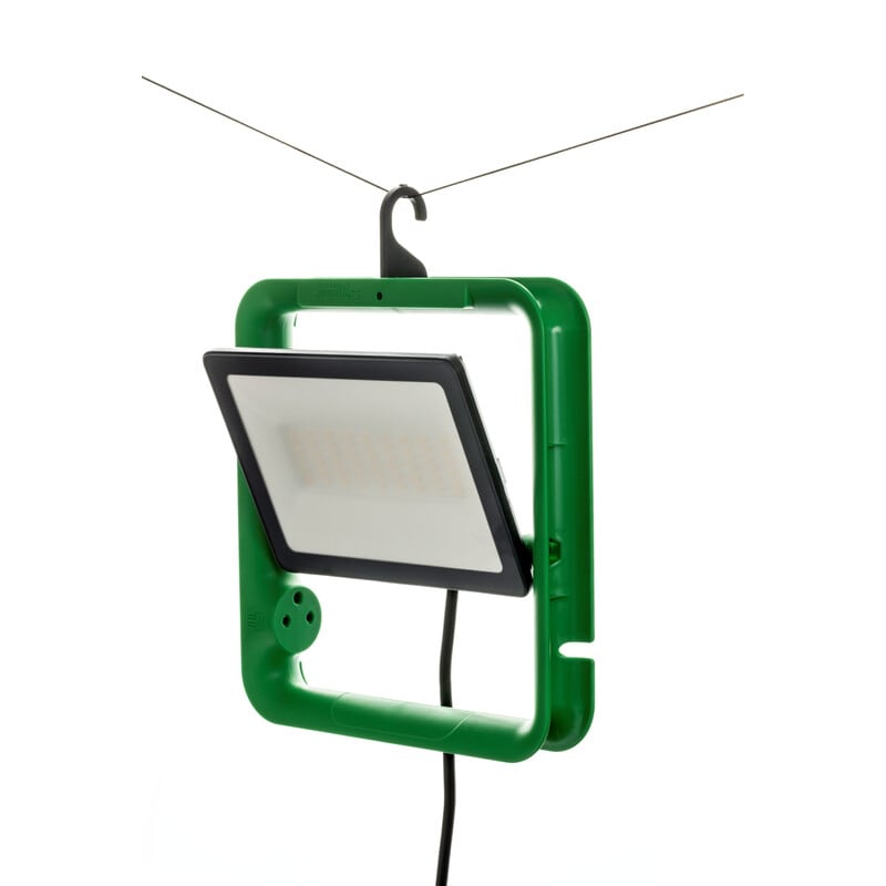 Valaisimen voi ripustaa tai laittaa maahan. Johdon saa kätevästi rungonympäri. Tekniset tiedot: Avautumiskulma 110, Värintoistoindeksi (CRI):80, Käyttöikä: 50000h, Käyttölämpötila: -30C +45C, Lumen: 100 lm/W,IP-luokka: IP65.