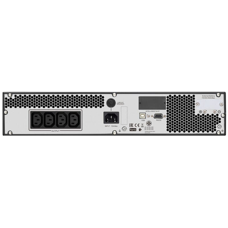 - UPS-tehomoduuli tarvitsee asennuskiskon SRVSRK1 räkkiasennukseen ja akun SRVS36RBP-9A sekä asennuskiskon SRVSRK1 akulle